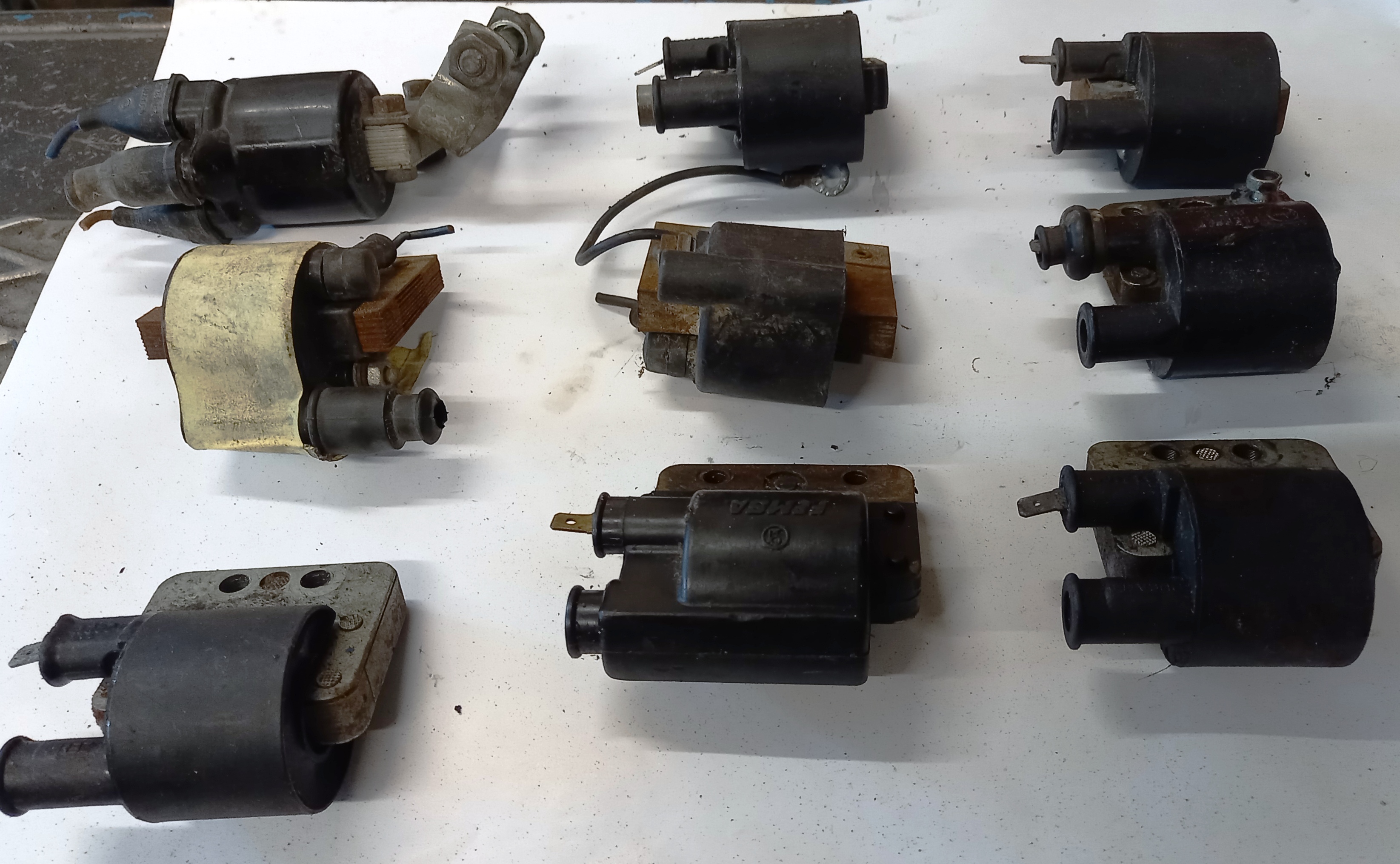 Originale Zündspulen gebraucht, für Cilo und andere Mofas, diverse Ausführungen, alle geprüft, der Zündfunke ist einwandfrei. Der Preis ist für 1 Stück. Siehe Foto.