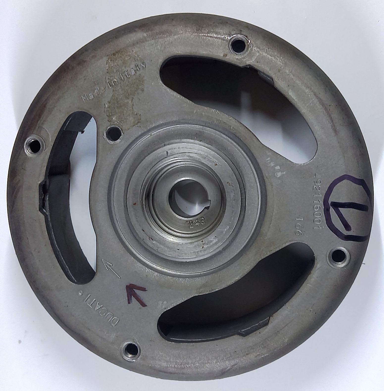 Occasion Magnetrad passend zu Puch Maxi. Nr.1 rechtsdrehend Ducati mit 4 Befestigungsgewinden für Lüfterrad.. Aus altem Lagerbestand, Zustand siehe Fotos.