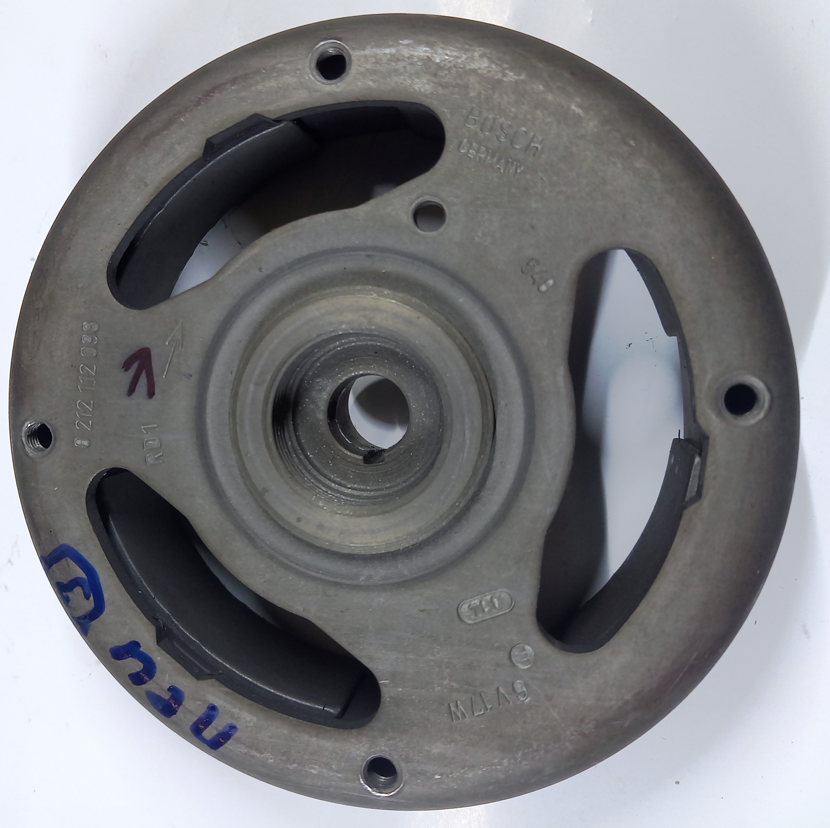 Original Magnetrad neu NOS Nr. 3 rechtsdrehend Bosch passend zu Puch Maxi. 4 Befestigungsgewinde für Lüfterrad. Aus altem Lagerbestand, Zustand siehe Fotos.