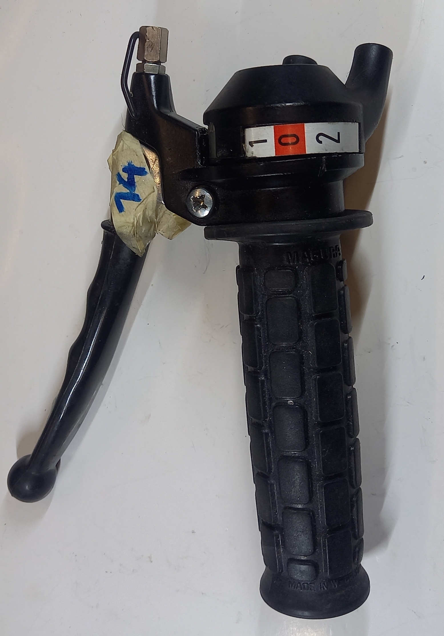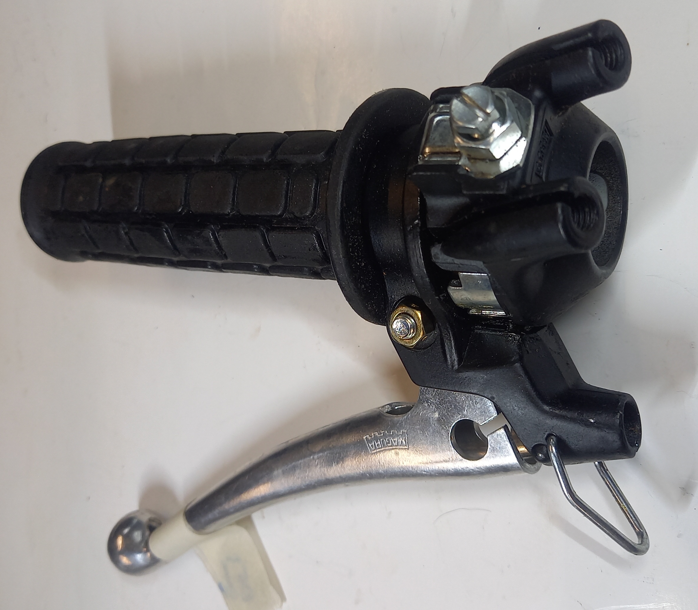 Gasdrehgriff NOS Magura für Puch Maxi. Das Griffrohr ist gebraucht der Griff mit Halterung neu, aus altem Lagerbestand mit leichten Lagerspuren. Siehe Fotos.