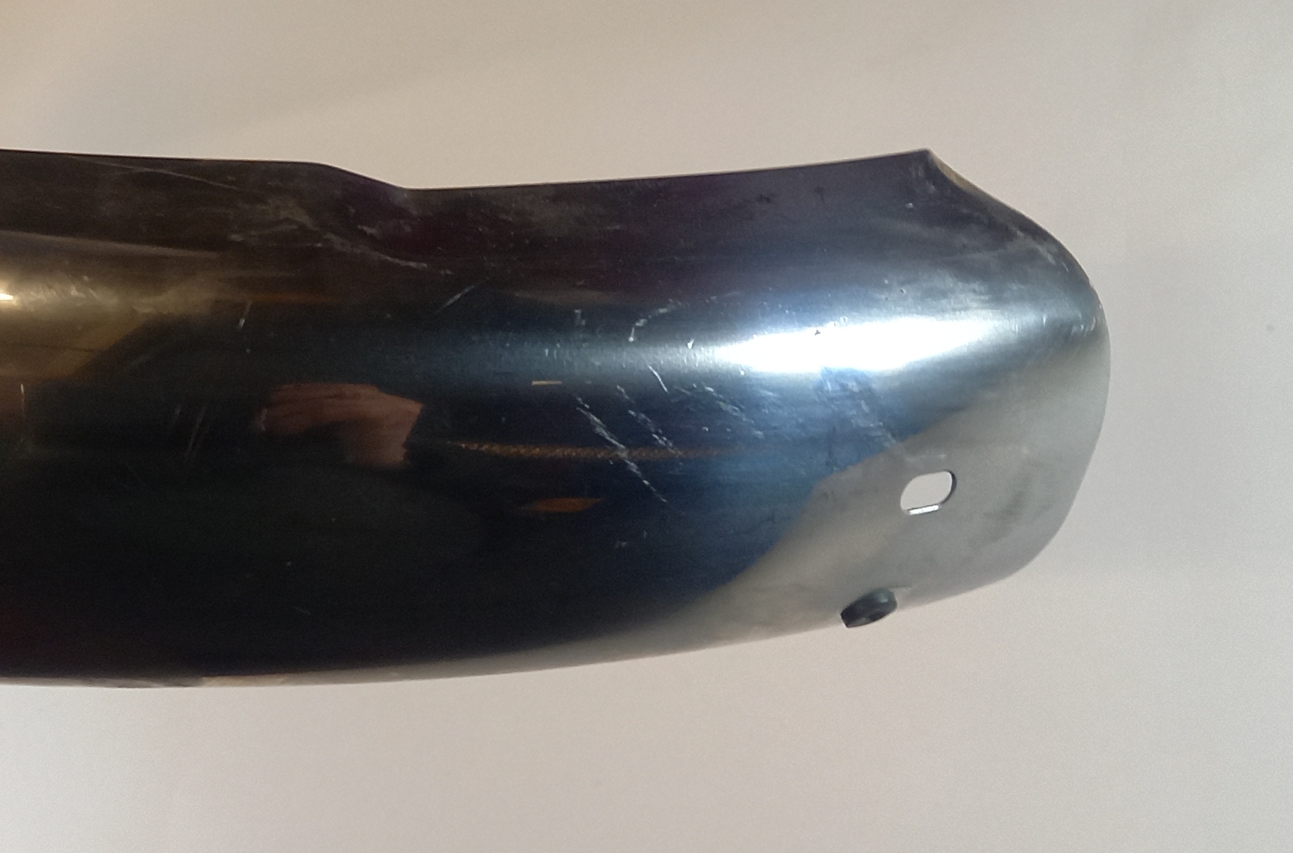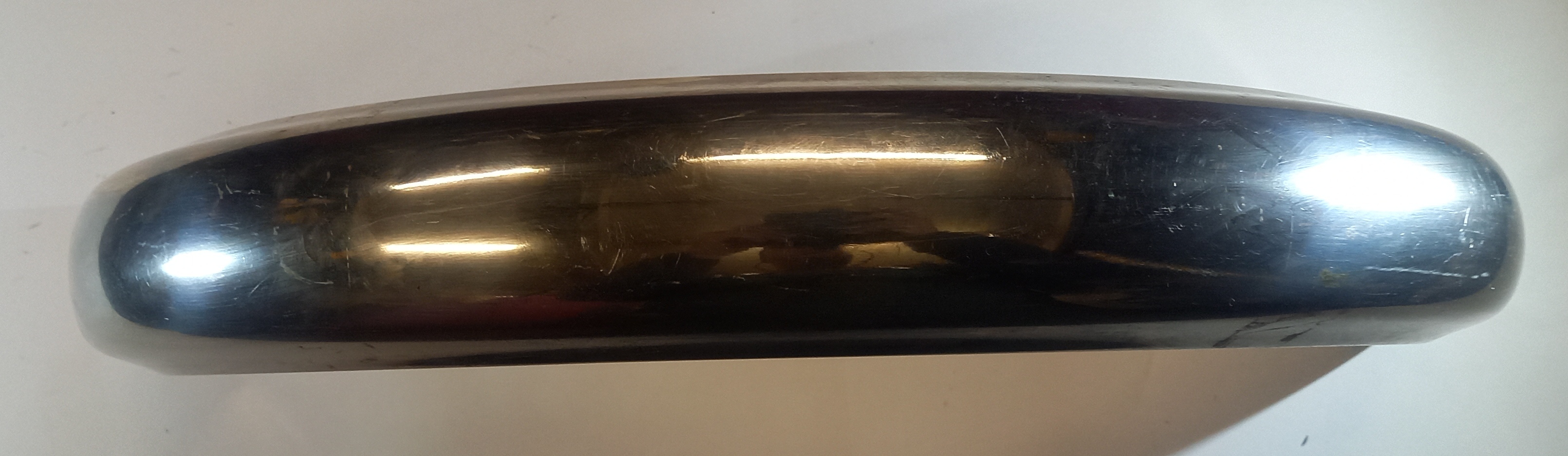 Schutzblech hinten für 23 Zoll Räder, NOS. Wurde vermutlich an Sachs Mofas verbaut. Originales und neues Schutzblech aus altem Lagerbestand mit kleinen Lagerspuren. Runde Ausführung ohne Kanten, ähnlich wie bei Puch Sport NS und NL und Puch 2 Gang Automat 2 AH.