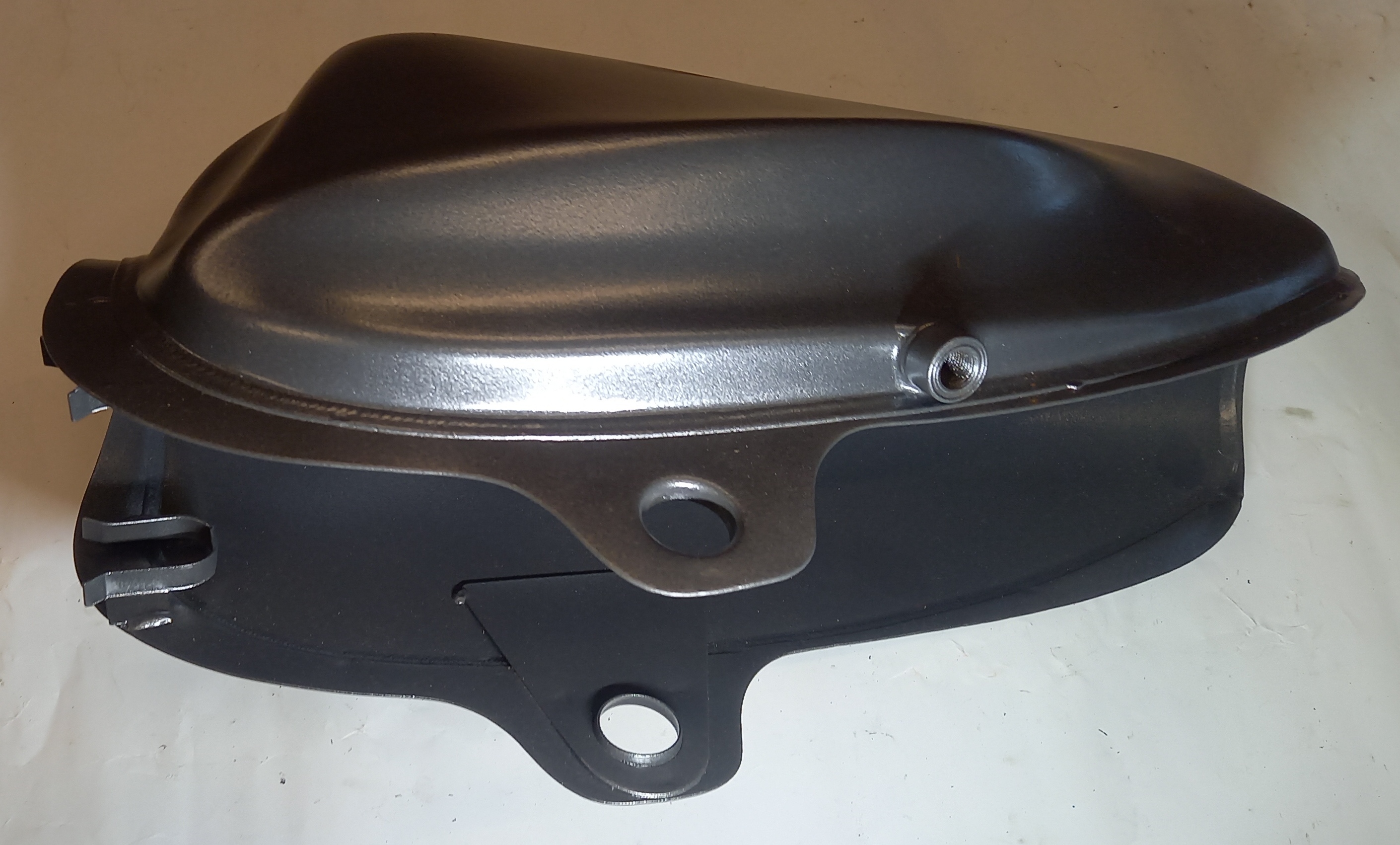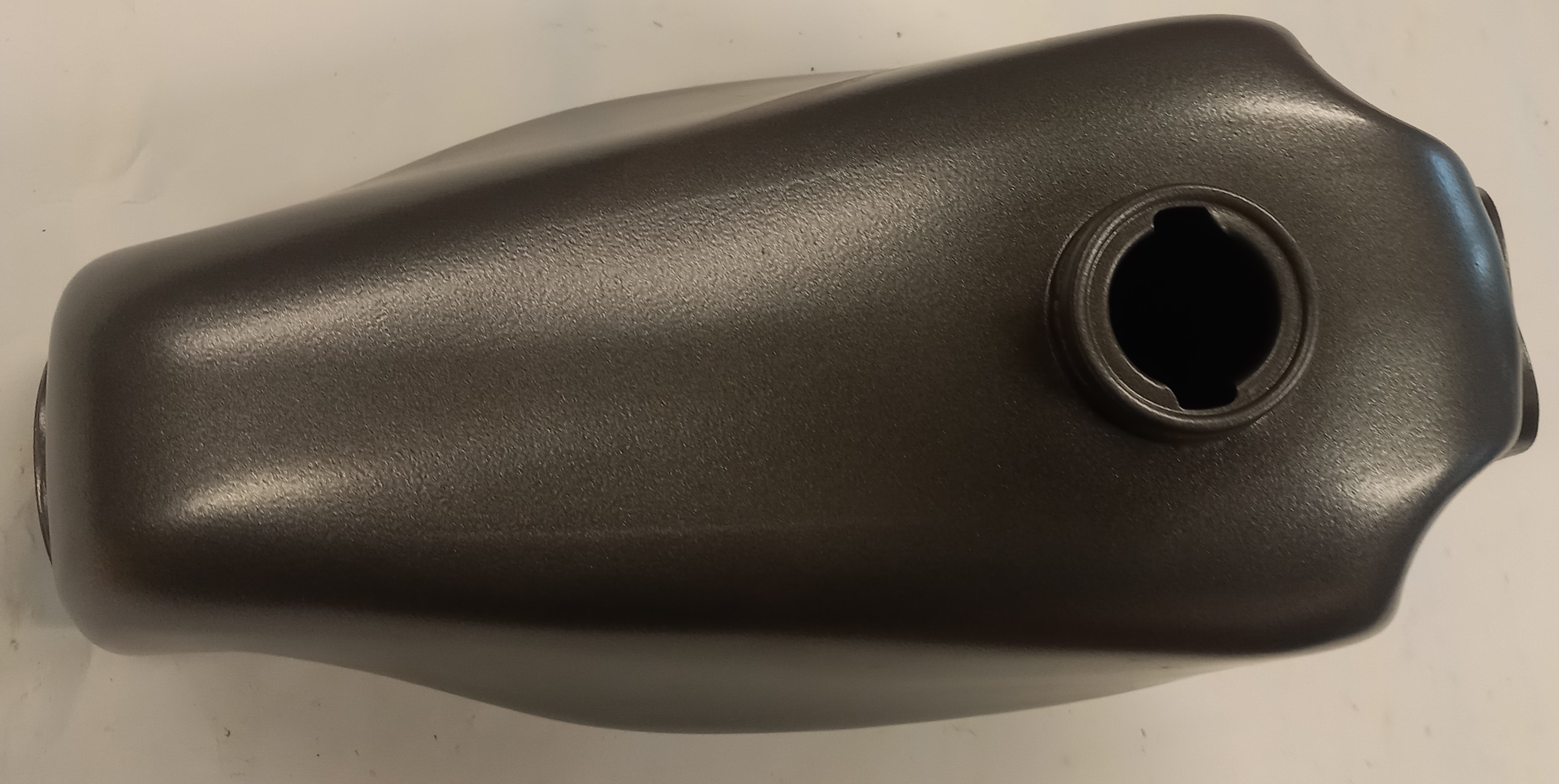 Benzintank aus Stahl, neu, in grau matter Farbe zu Pony Cross. Der Benzintank wurde anlässlich einer Werbung für Pulverbeschichtung neu gekauft und pulverbeschichtet. Danach wurde er gelagert und vergessen. Im Inneren hat es normale leichte Spuren von Flugrost, den man lassen kann. Auf Wunsch kann ich aber die Innenseite, kostenpflichtig, etwas sandstrahlen. Falls man die Farbe selber ändern will, den Tank mit einem Schleif -Pad leicht anschleifen und zB. mit einer Spraydose in mehreren Durchgängen neu lackieren.
