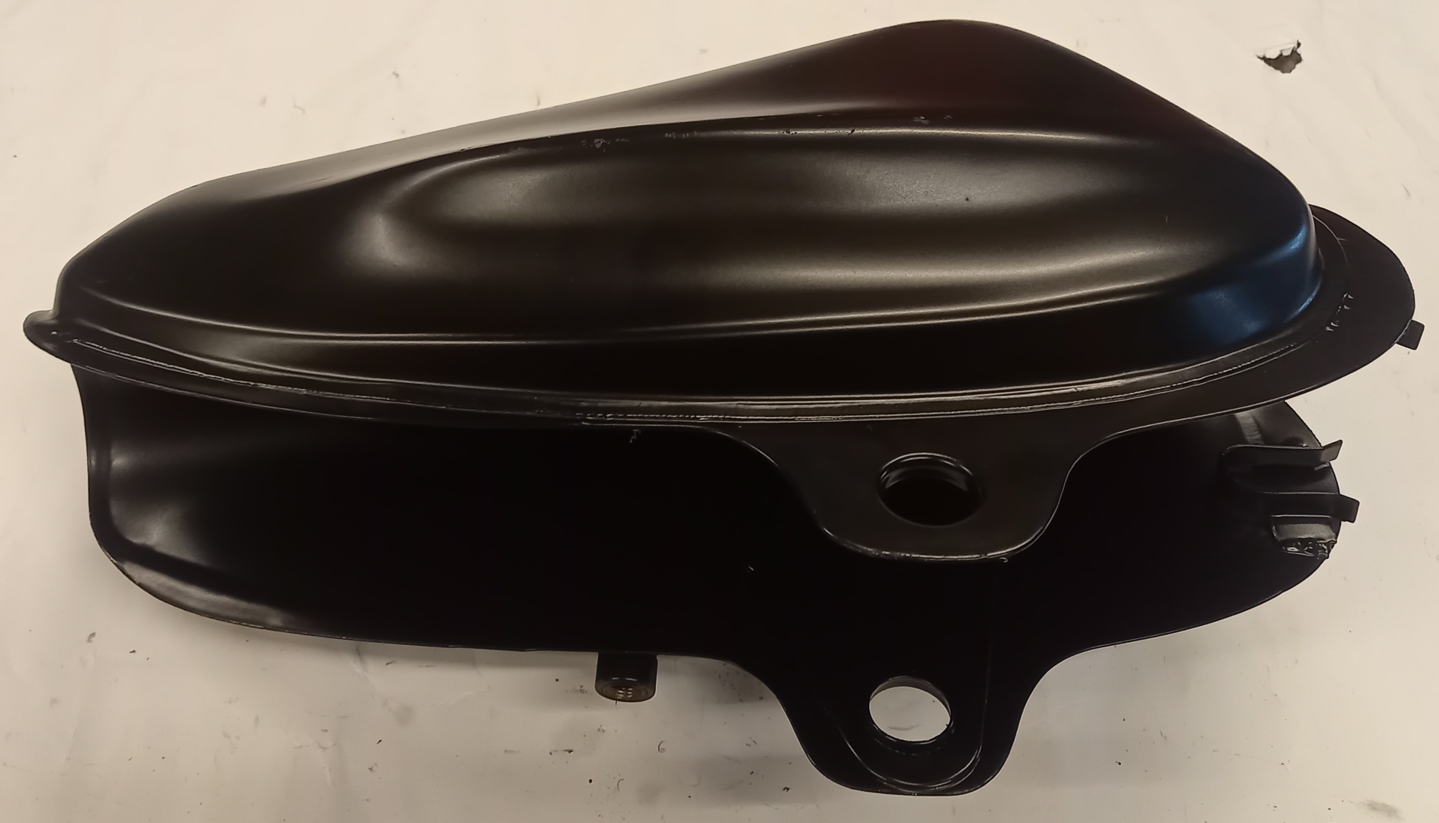 Benzintank aus Stahl, neu, in schwarz matter Farbe zu Pony Cross. Der Benzintank wurde anlässlich einer Werbung für Pulverbeschichtung neu gekauft und pulverbeschichtet. Danach wurde er gelagert und vergessen. Im Inneren hat es normale leichte Spuren von Flugrost, den man lassen kann. Auf Wunsch kann ich aber die Innenseite, kostenpflichtig, etwas sandstrahlen. Aussen sind kleine Lagerspuren zu sehen.Falls man die Farbe selber ändern will, den Tank mit einem Schleif -Pad leicht anschleifen und zB. mit einer Spraydose in mehreren Durchgängen neu lackieren.