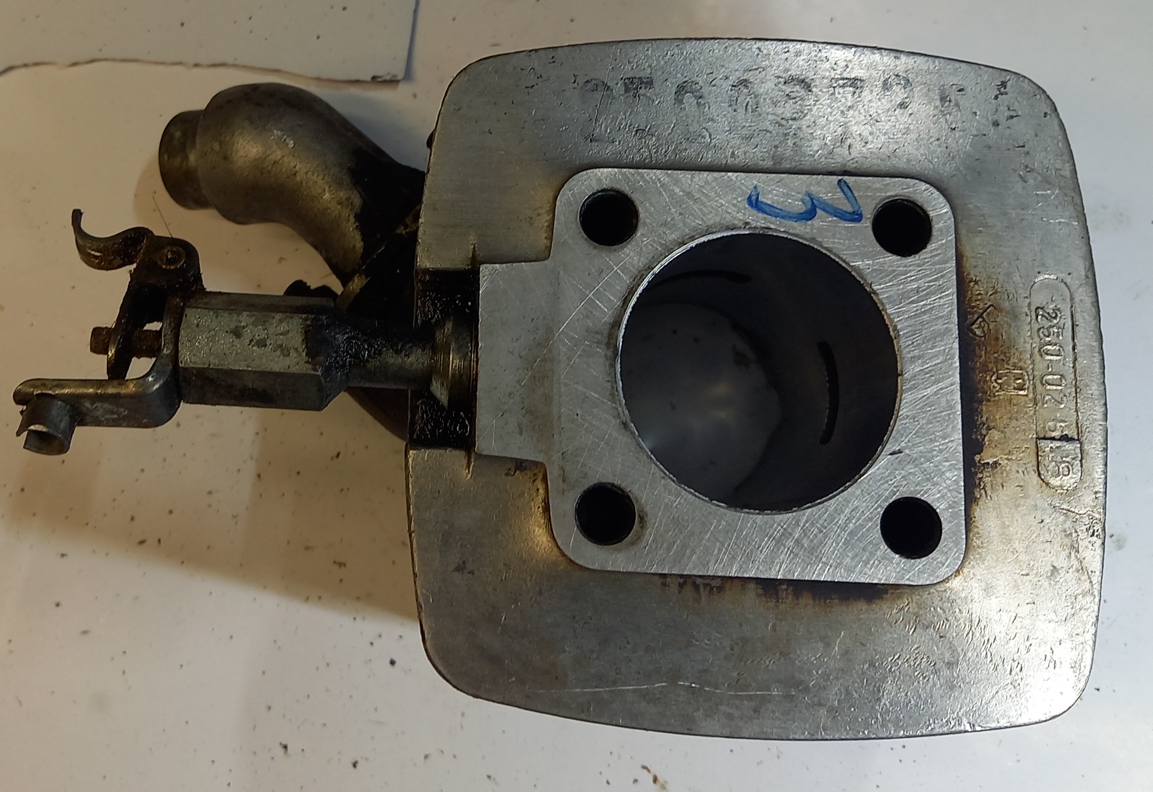 Original Zylinder zu Zündapp ZR 30 2Gang Automat, Occasion. Inklusive Ansaugstutzen, Dekompressor und Kolben. Aus altem Lagerbestand. Fläche im Verdichtungsbereich ist gut. Siehe Fotos