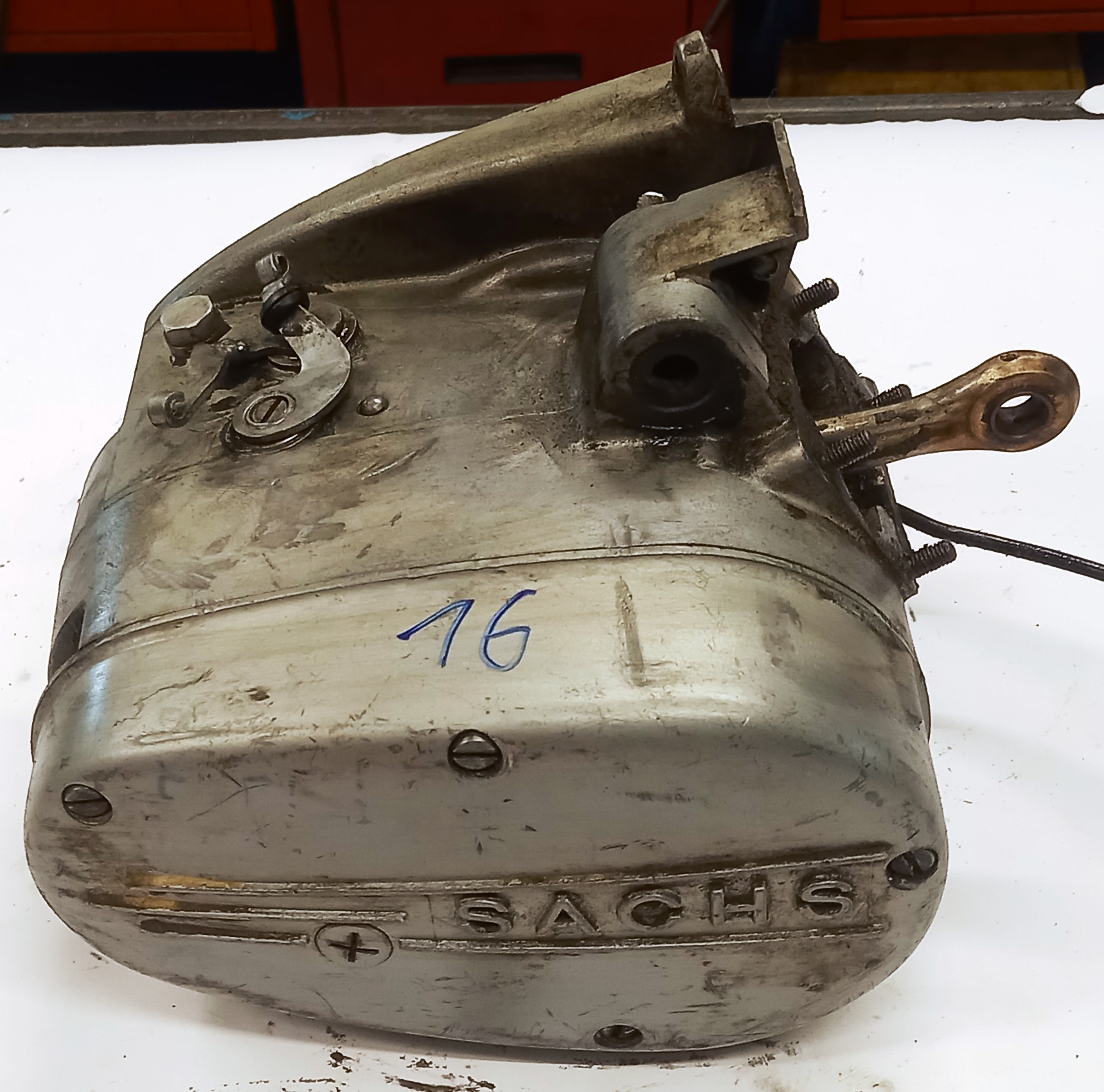 Aus altem Lagerbestand und ist jetzt zu verkaufen. Den äusseren Zustand können Sie auf den Bildern erkennen. Den Getriebedeckel habe ich geöffnet und den Inhalt auf Zustand und Vollständigkeit geprüft. Falls Sie weitere Teile brauchen um den Motor zu komplettieren, habe ich alles an Lager.