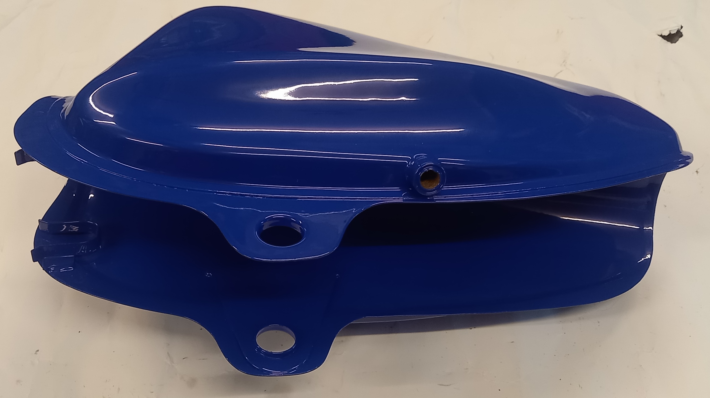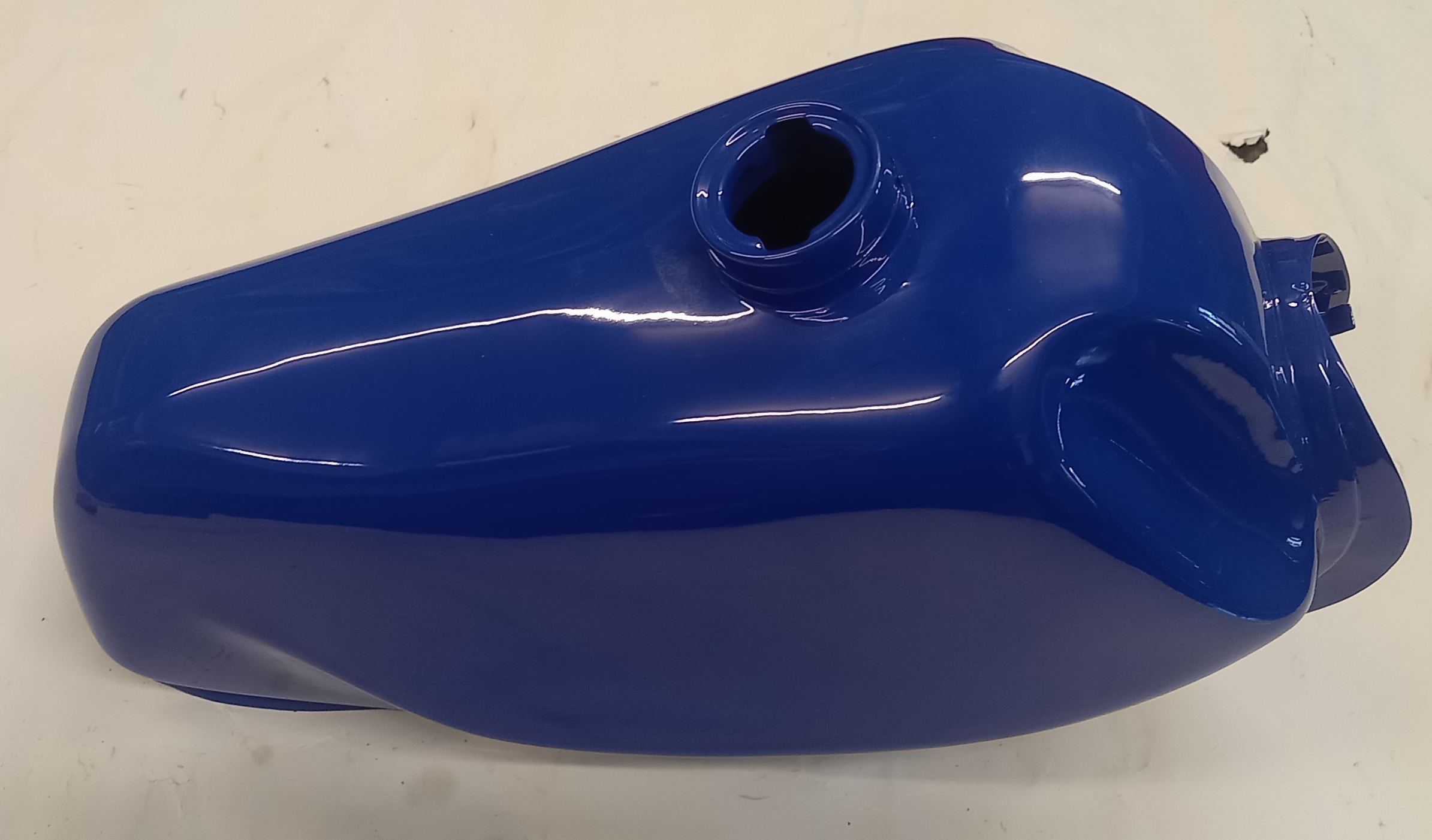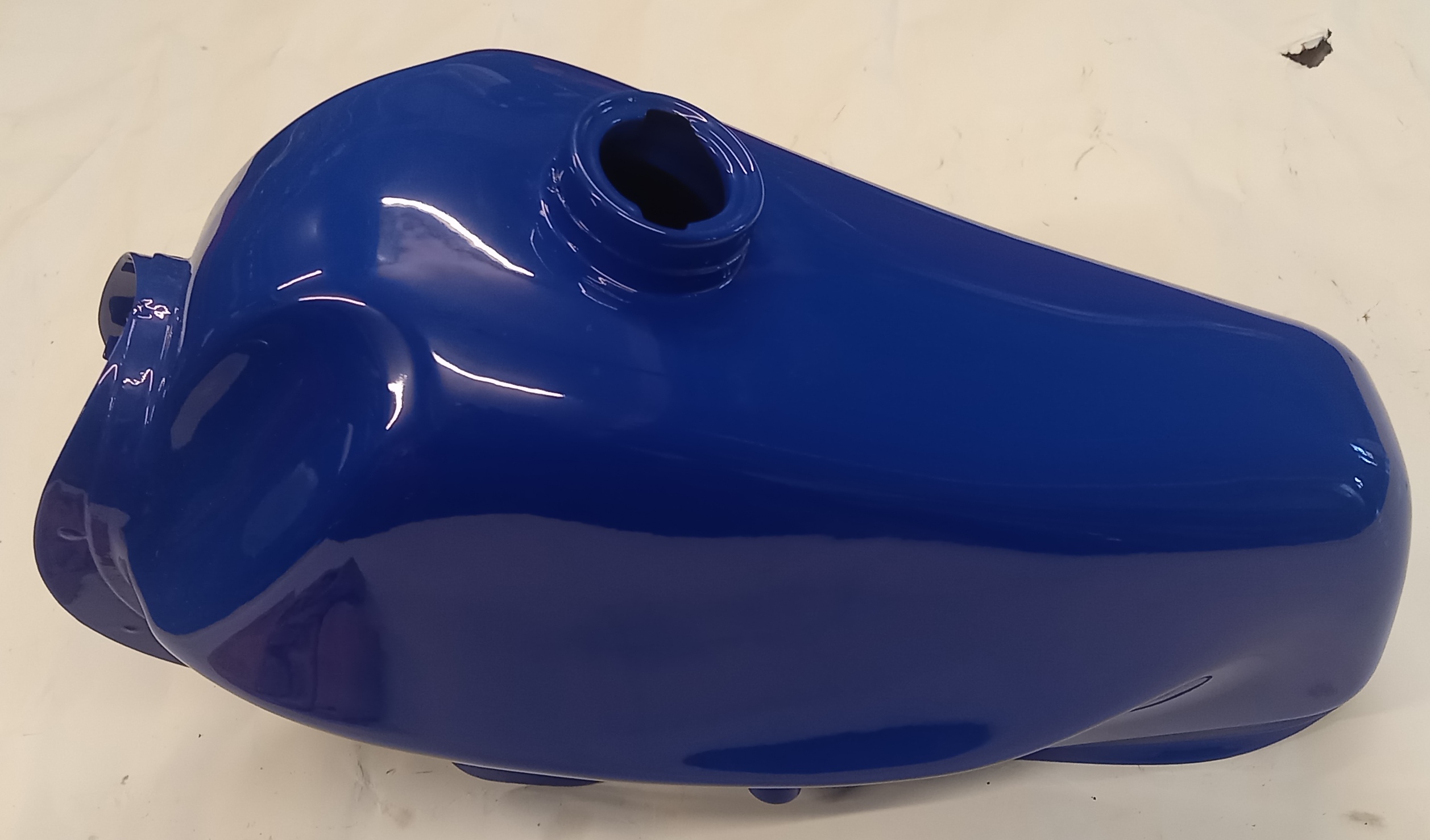 Benzintank aus Stahl, neu, in blauer Farbe zu Pony Cross. Der Benzintank wurde anlässlich einer Werbung für Pulverbeschichtung neu gekauft und pulverbeschichtet. Danach wurde er gelagert und vergessen. Im Inneren hat es normale leichte Spuren von Flugrost, den man lassen kann. Auf Wunsch kann ich aber die Innenseite, kostenpflichtig, etwas sandstrahlen. Heute kostet ein fabrikneuer, original lackierter Tank, ca. 180 Fr.-